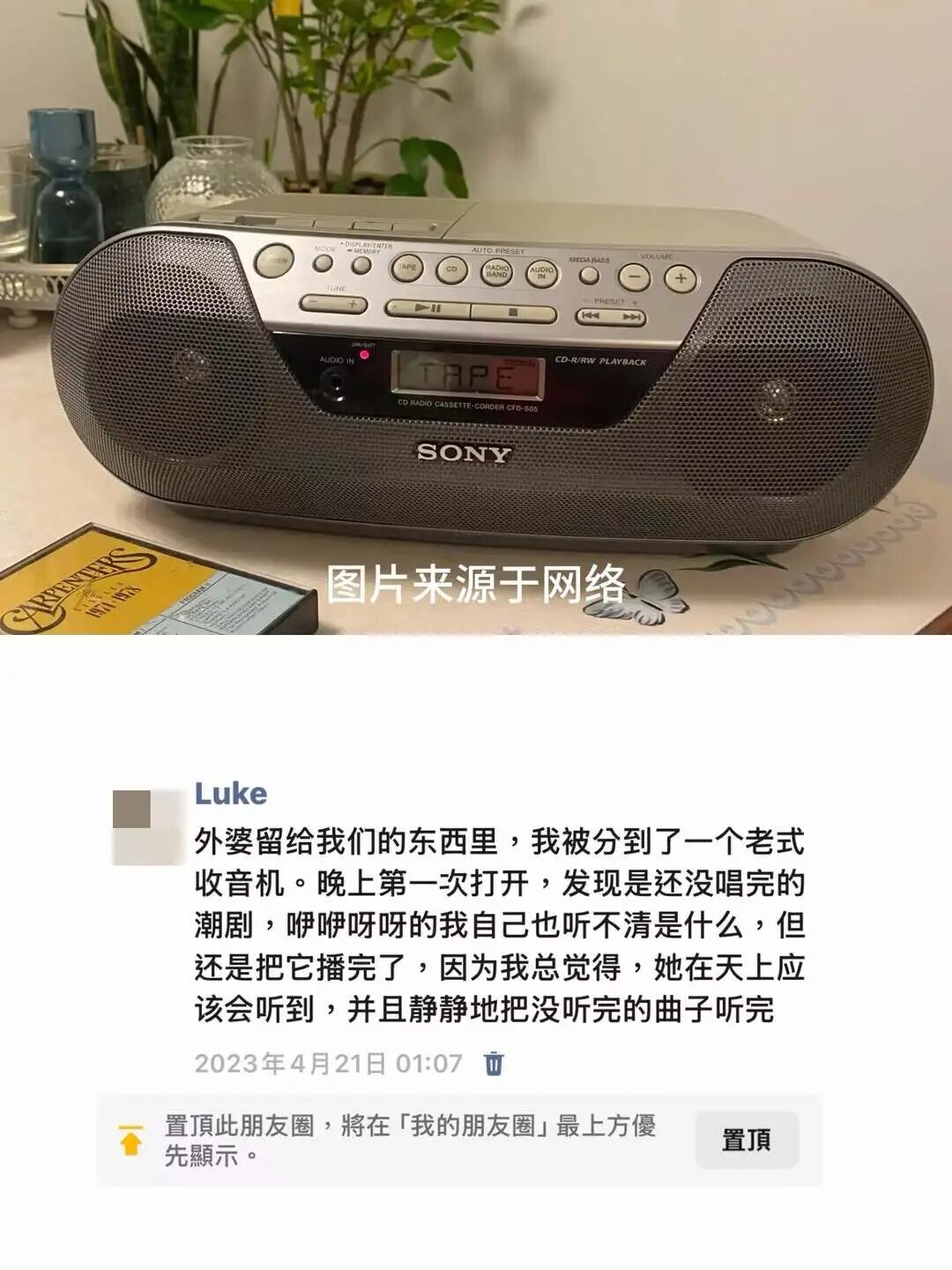 前几天,我把外婆楼下来的收音机放在窗边,阳光照在上面,播放一盒了旧磁带,听到了那些因年岁而略微走调的歌声与磁带的“沙沙”底噪。
