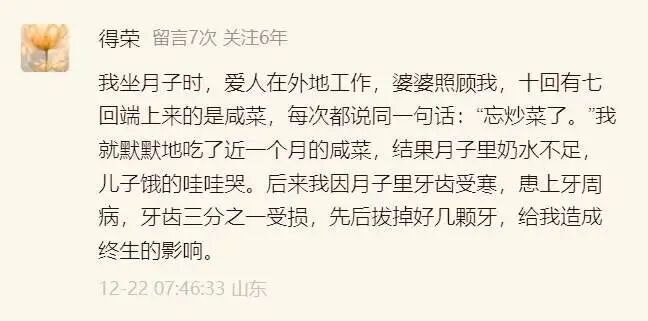 一位读者在评论区阐述自己坐月子的经历: