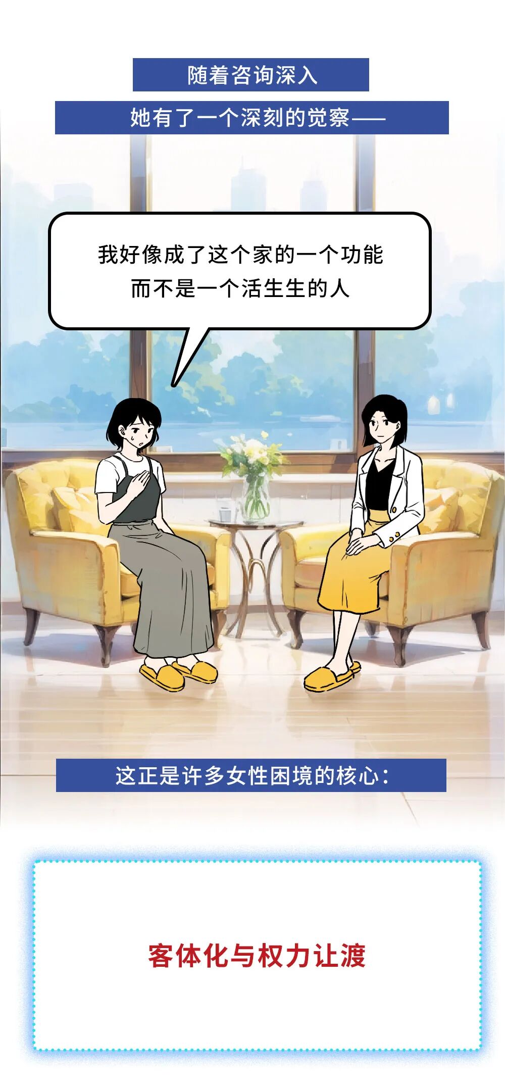 在安全的空间里,咨询师会陪你一起回看,那些你慢慢把决定权交出去的时刻、探索困境背后的根源。
