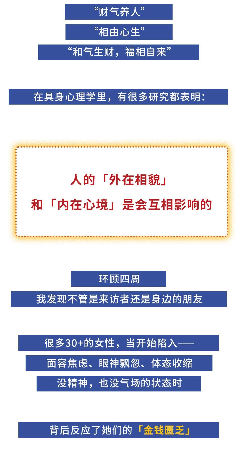 这种 “本自具足”的状态会外化为健康的光泽、挺拔的仪态和一种吸引人的气场。