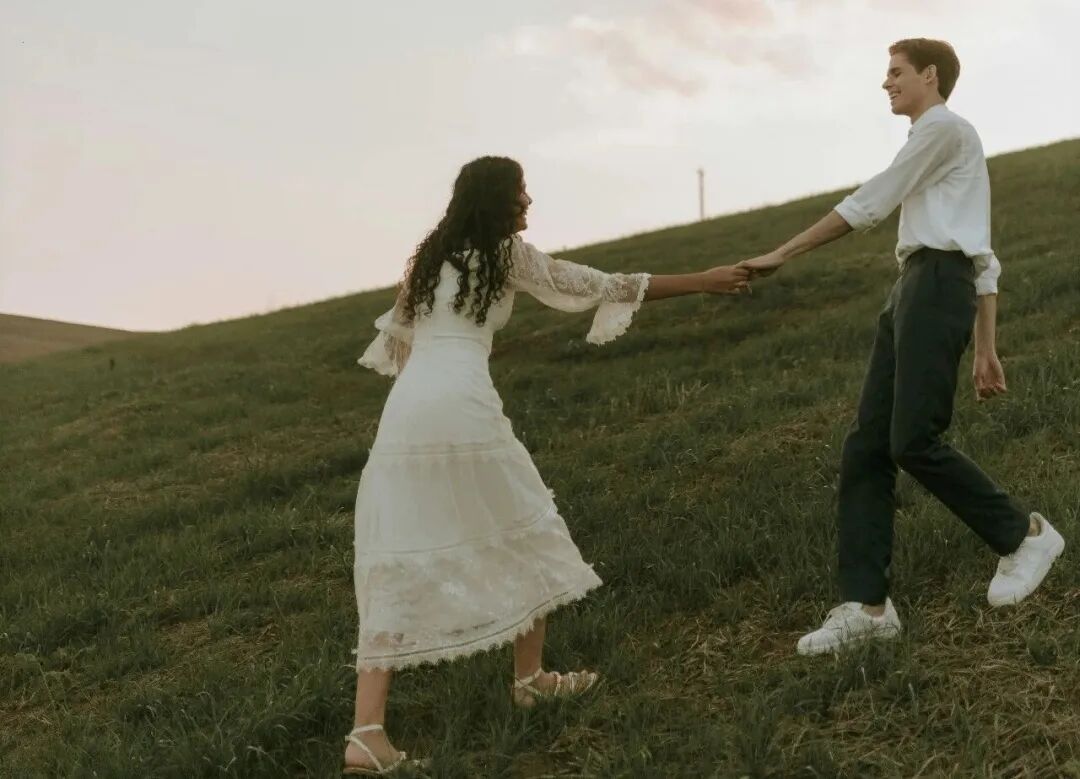 父母恩爱地肩并肩站在一起,共同祝福孩子走向独立,去寻找自己的世界。