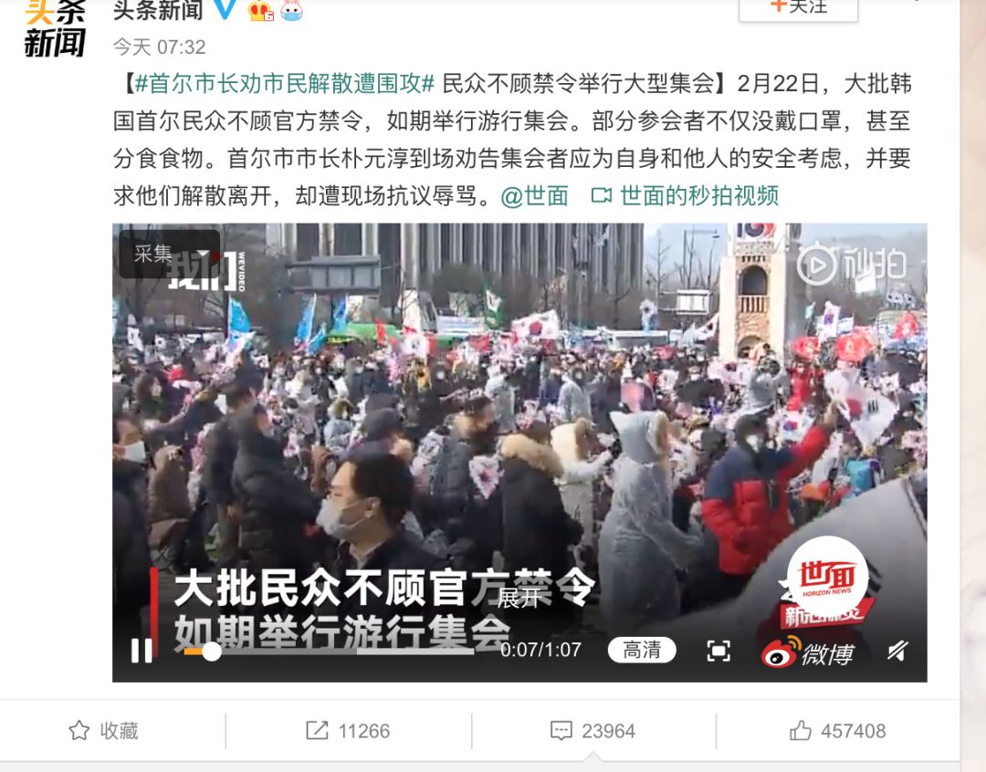 例如不顾禁令,坚持不戴口罩上街集会的韩国保守派.....