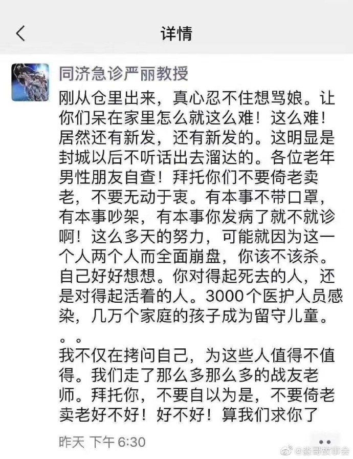 一线抗疫战友所做出的牺牲太多,太痛,太重,我们也不要让他们功亏一篑。